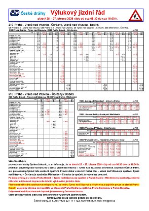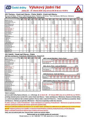 Výluky na železniční trati č. 210 v úseku Praha-Braník – Vrané nad Vltavou – Měchenice/Týnec nad Sázavou v termínu od 18. - 27. 3. 2026